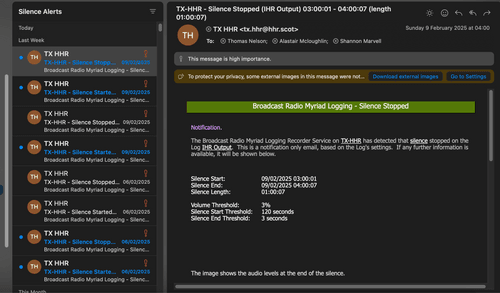 It’s Sunday morning. A quick check of the emails and I see silence alerts. Specifically, one hour of our silence between 1am and 2am, then again at 3am to 4am. We have a system that detects when the station goes silent. That sends an email to the Station Manager and the Chair so that we can take some action. From experience, this usually points to a fader being left down. I dial in to the studio and using Myriad I can produce a report of everything that’s been played, and on which fader they were played on. If both hour long shows were on the same fader, that usually points to the fader that is down. However, on this occasion, I can see that actually, nothing was played. Myriad played nothing during those hours. What should have played was the previous evening’s live programming.