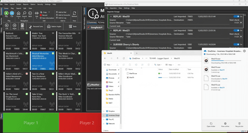 The view from the TX PC with the software that takes the live show from the logger and saves it to OneDrive
